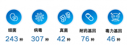 华大基因PTseqTM呼吸道感染病原微生物靶向高通量基因检测依托国产自主测序平台、专利引物设计系统及独有污染矫正算法,具备了测序技术的广谱性和多重PCR技术的高灵敏度优势,覆盖了268种呼吸系统感染核心病原体,并同时进行重点耐药基因和毒力基因鉴定。